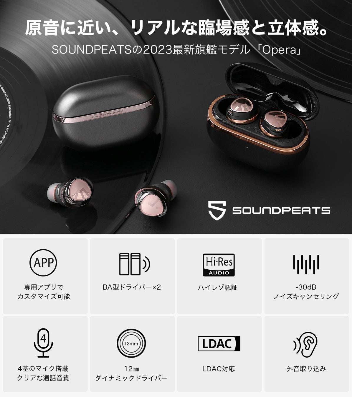 「Opera」は、SOUNDPEATSが得意とするバランスの取れたリアルサウンドをベースに、さらに臨場感と立体感を追求し、ブランド初の試みである3基のドライバーを贅沢に搭載したプレミアムモデルです。